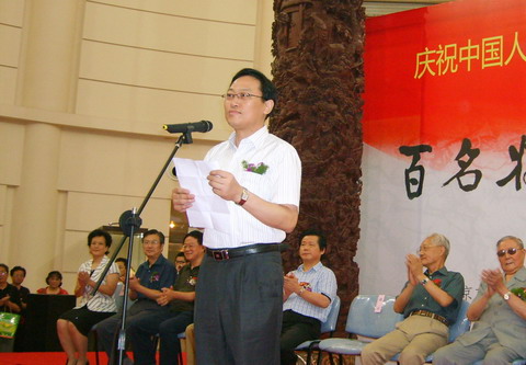 “庆祝中国人民解放军建军八十周年——百名将军书画展”于二OO七年八月四日上午九时三十在江苏省工艺美术馆(爱涛艺术中心)举行,出席活动的领导有原南京军区司令员向守志上将,原南京军区政委傅奎清中将,原南京军区政委方祖歧上将,原南京军区副司令员郭锡章将军,原江苏省军区政委彭勃将军,原南京军区装甲兵司令员王振邦将军,原南京军区副政委尚安平将军,原江苏省军区副司令员乔永立将军,江苏省文化厅副厅长高云先生,江苏省文联副主席言恭达先生,南京市民政局党组书记张礼良先生,南京市民政局雍副局长,南京市红叶集团董事长刘培之先生,南京市红叶集团总裁钱静琪女士以及社会各界人士、解放军战士、书画名家等三百多人参加开幕式。