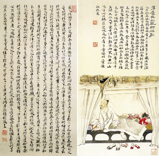 此件陆俨少疑伪作品《茅屋为秋风所破歌》图1,便是高科技时代的书画造假产物。由于作伪者使用了某特种定位仪器参照着真迹本图2来作伪,最终赝制效果显得相当逼真。使得该疑伪作品到后来“躲过”了重重把关,竟然被选入去年6月在上海美术馆为纪念陆俨少诞辰100周年而举办的“流光溢彩——陆俨少作品展”中,并展示于展厅的最显要位置。当时此画左边还配置有陆俨少次子陆享用毛笔书法题写的洋洋洒洒近五百言的“赞美”跋文,提起这一幕,现在无不令人感到遗憾。通过一真一伪俩图比较可知:它们“画”的尺寸相同,面目基本一样,连有的小细节诸如某处笔线起承转合的运行态势也很接近,包括三方伪印章的印文和钤盖位置也都如法炮制。且伪作还经过做旧处理,表面气息似乎更加“古典”。难怪有不少圈子里人都说现在专家“打眼”(收藏界俗语,意指看错了署名某名家作品,以假当真了)是书画鉴藏界再正常不过的事了。
