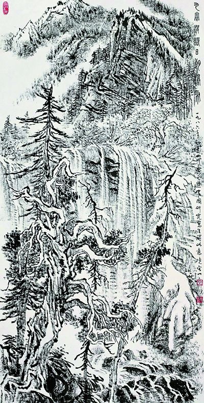 张仃 九寨沟诺日朗瀑布 镜心 1986年作