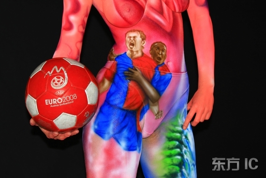人体彩绘迎接欧锦赛