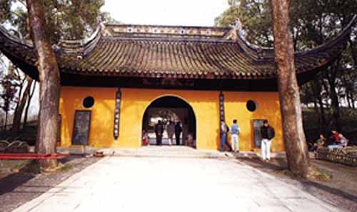 云岩寺又名虎丘寺,位于江苏省苏州西北的虎丘山上,佛寺沿小山而筑,将山包于殿宇之后,有“红日隐檐底,青山藏寺中”之说,历来高僧辈出,文人雅士慕名而至。传说虎丘山中有虎占山为王,危害生灵。曾在寒山寺挂锡的寒山僧乃文殊菩萨的化身,其坐骑青狮恼于白虎作恶,趁文殊闭目养神之机,潜出山门,直扑虎踞之丘。虽降伏白虎,却已来不及返回佛门,跌落于枫桥之南化作石山,被降服的白虎,也化成今天的虎丘。云岩寺计有千佛阁、转轮大藏殿、土地堂、水陆堂、罗汉堂、伽蓝堂等寺院。宋宁宗品定天下禅宗丛林,双林列为十刹之九。惜其殿宇多已不存,整个仅存山下之断粱殿与山顶之虎丘塔。宋以后为禅僧挂锡之处。临济禅宗十二世宋僧绍隆来此主事,一时众僧云集道声大扬,遂形成祥宗一支虎丘派。虎丘派以绍隆为祖,影响不小。当时绍隆名传宇内外,日本使者来华必到虎丘拜谒。绍隆坐化后建塔于虎丘之东山庙西松径后,塔前竖一石坊,俗称隆祖塔院