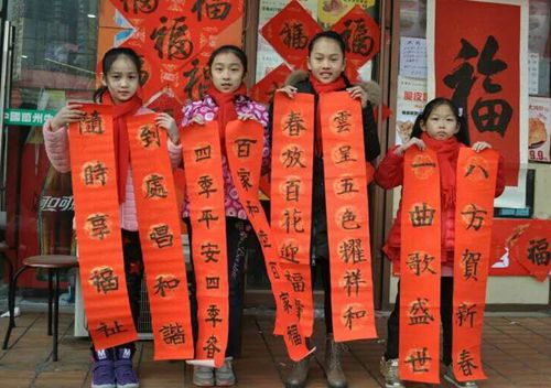 参加庆元旦送春联活动的有宣暄,黄语涵,蔡何婧,梁雨梦,仲美慧,