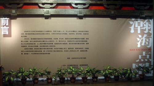 由江苏省美术家协会、江苏省书法家协会、南京静海画院主办,扬州双博馆、扬州红十字会协办,南京静海画院著名书法家武晓临女士,著名青年花鸟画家刘会德先生,著名洛阳牡丹画家罗玉祥先生,著名山水画家贺更生先生于2008628日上午10在扬州双博馆(扬州文昌西路416号)举办“澣海点墨”书画展开幕式,“澣海点墨”书画展为期六天。他们以祖国传统的水墨花鸟山水画和正,行,草书为主,构成我中华大地许多优美的画面,给人们的和谐幸福之感,定会得到扬州人民的欢迎,同时画家们拿出部分作品捐献给扬州红十字会,通过扬州红十字会组织作品义卖,尽微薄之力,帮助贫困群体。