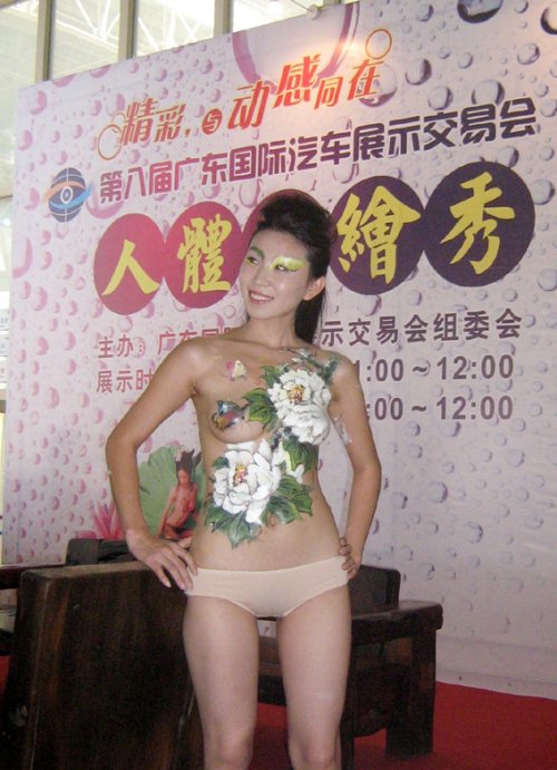 此次彩绘活动共有两场,第一场模特身上的图案是大家熟悉的牡丹,第二场则是荷花。我们知道牡丹号称“花中之王”,素有“国色天香”的美誉,一向被推崇为“中国名花之最”。 被视为 富丽繁荣(高贵)的象征。