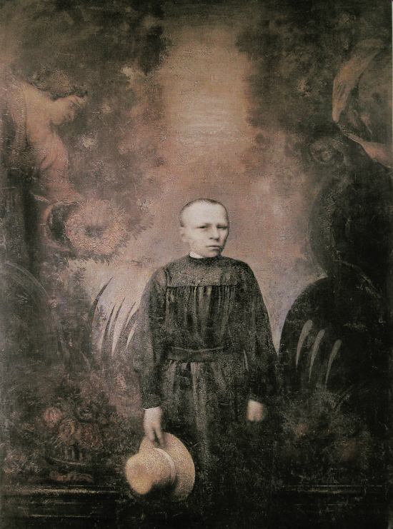 图像依附于形式,这是由每个人的独特境况所决定。扎布罗夫以作品向我们提供过去的诱惑,以常见的事物引领我们跟随他进入对生命根源的迷惘。有些是显而易见的——一件薄纱裙、一种姿势、一种不变的静态、一件玩具,都混合入他的画布,模糊以至于使我们难以辨认,不得不更近地去观看。他把一些淡褪的色彩,刮擦去的痕迹、手迹等诸多因素聚集在一起,通过画作表现出来。他沉湎于人物的古老宿命,构造虚幻的绘图。他抓住、吸收并且控制它们,组成了家庭相册集,建造了家族系谱,并将这些虚构的家族系列肖像,挂在想象城堡中的画廊。