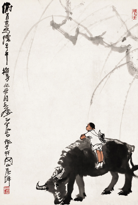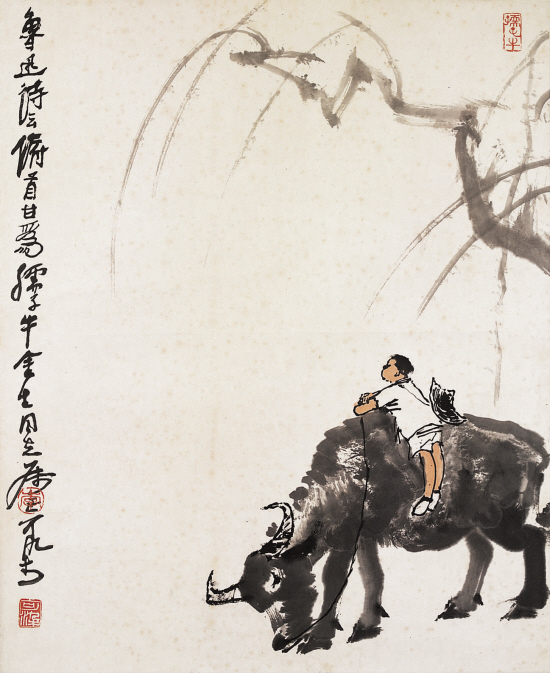 关于名家书画的“保留节目”,我们不妨可将其理解为我们到KTV去唱歌,总有几首歌曲是自己喜欢的、熟悉的,每次一唱就都能体现出歌唱者的相对高水准,故而总会在一段时间内作为保留的曲目而乐此不彼。在名家书画的“保留节目”中我们熟知的如画家李可染画牛与牧童、黄胄画毛驴、徐悲鸿画马、关良画 “三打白骨精”或 “武松打虎”题材、书法家林散之书写毛泽东的一些诗词等等。在现实中皆客观存在着相对较接近的“版本”。这些书画名家,对自己相对擅长创作的题材,在一定时间段内会反复作出数件甚至于几十件不等的从笔墨到结体或造型及章法,甚至于连同幅式皆非常接近的作品。而我们有的书画鉴藏者一旦同时遇到两件或更多署名同一名家的作品,就往往会想当然地用惯性思维“不怕不识货,只怕货比货”地来认定质量相对高的那一件作品才是真迹,质量相对低的那一件或那些则必属赝品,此是极不正确的鉴定认识观。。