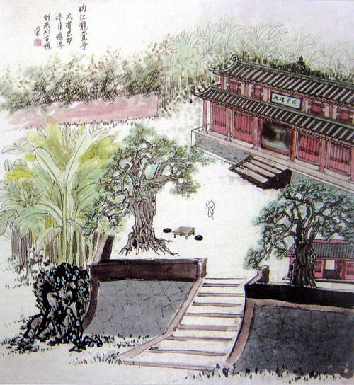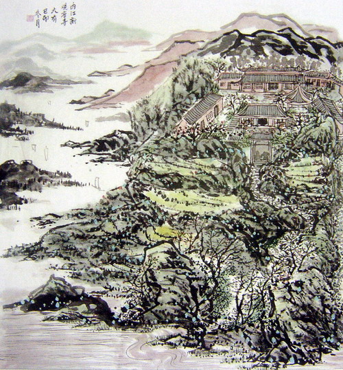 刘大有:“内江龙觉寺”69X67CM