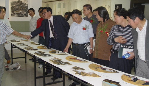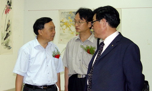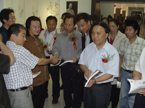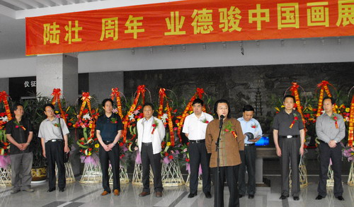 仪征市人大、文化局领导以及书画界二百多人参加了“陆壮、业德骏、周年中国画展”开幕式。
