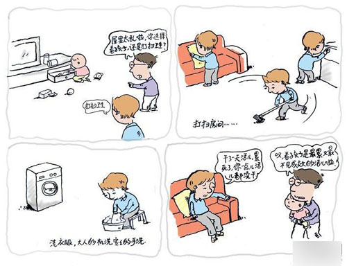 这些源自生活的真实场景,一下子吸引了网友:看你的漫画,就像在看自家的故事。网友“may5122”还进一步解释说,自己生了孩子后,家里的气氛变得和漫画中的一样:我变得啰嗦了,为了宝宝可以去学习炒菜,学习理财,逛街总爱逛童装店;老公总是被我指挥来指挥去的,我总嫌他这里做不好,那里做不好………”