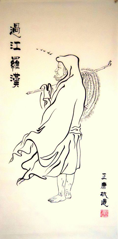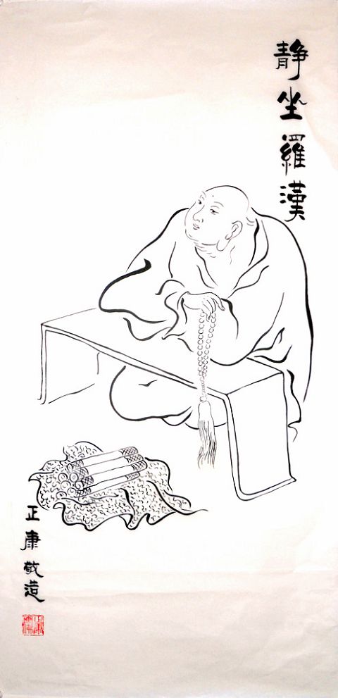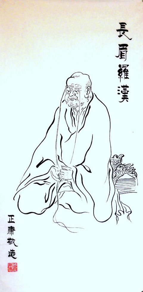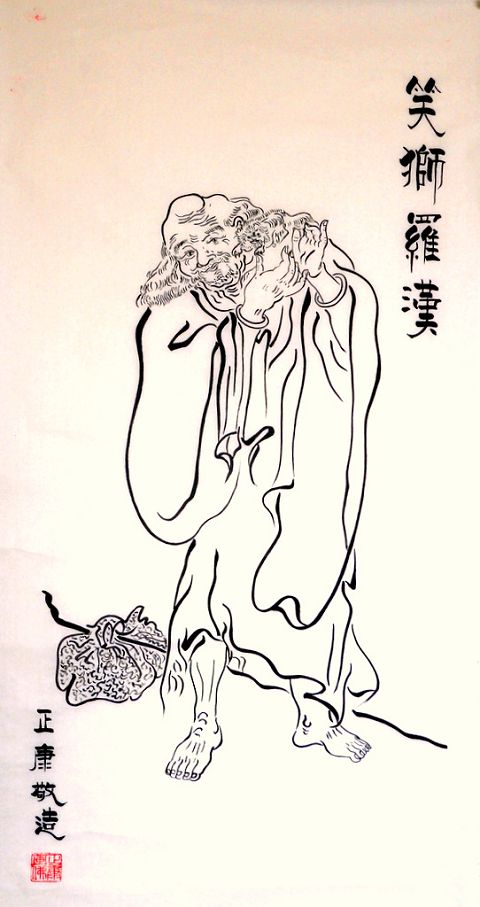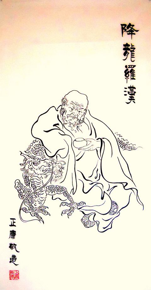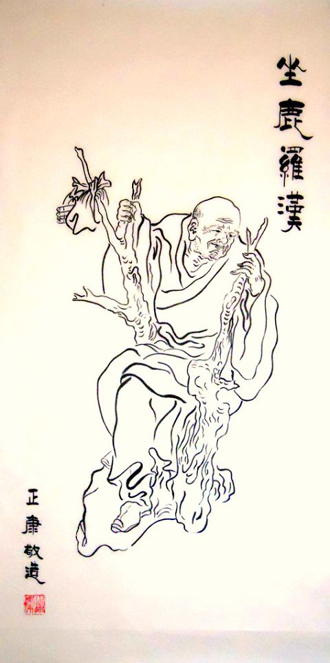 上图是我今日凌晨起来,精心绘制的第一幅《伏虎罗汉》像。敬请师兄们多多慧正、指教!以便我将《十八罗汉》像造的更好!感恩!(南京正康居士)