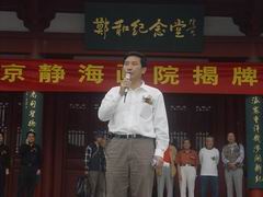 在丹桂飘香,喜迎国庆的前夕,南京静海画院揭牌仪式于2006年9月30日在南京市下关区静海寺隆重举行,南京市新闻出版社党组书记施正东、下关区有关部门领导吴有康、姜东林、高淳县农工部部长夏功保、高淳县建设局戴正森主任、特邀著名书画家、艺术家:俞律、吴国亭、刘之光、刘宇甲、岳鸿武、李斌炎、杨远威、南京芳草书画院院长蔡志芳、南京江东诗书画院院长方云岫和全省书画界人士200多人出席揭牌活动。