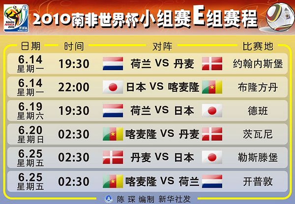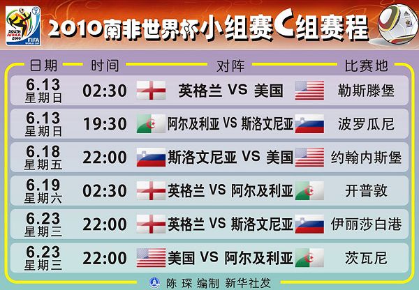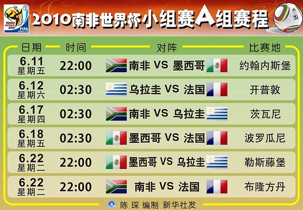 2010南非世界杯小组赛赛程