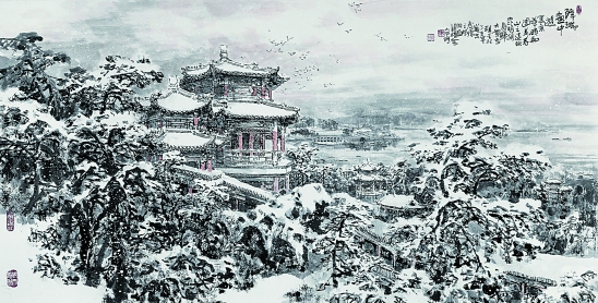 留白画的墨构成了王自修冰雪山水画的大手笔,也打造了他冰雪山水画的符号体系。