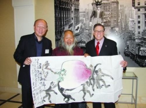 梅西百货专门为徐培晨先生制作了精美的英文专刊加以隆重推介。其实徐培晨先生也是美国纽约的老朋友了,早在2009年为庆祝中美建交三十周年,徐培晨先生作为中国的唯一艺术家应邀在纽约亚洲艺术馆举办了首次个人画展;2011年在联合国“中文日”当天在美国联合国总部举办个人画展;2012年在哈佛大学举办《我和我的猿猴画》讲座和画展,均广受好评,圆满成功。蛇年除夕前夕,徐培晨先生又应邀参加梅西之夜盛典;用中国话说,是“大四喜”了。鉴于徐培晨先生对纽约社会文化发展做出的杰出贡献,在这次盛典上,纽约州政府特地委托梅西总裁为徐培晨先生颁发了嘉奖证书。