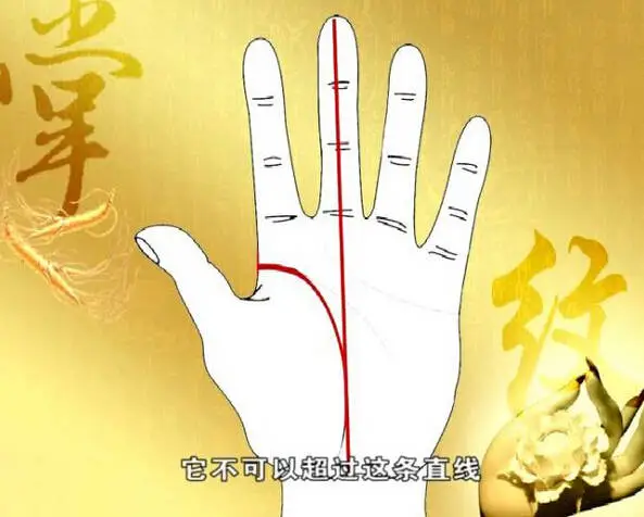 标准的三线,不可以超过或者远离中线。否则代表疾病的变化。三线又称生命线。代表了我们身体的免疫功能。起点不能高又不能低。起点偏高的容易暴躁容易焦虑,容易高血压。起点低的人容易得低血压,情绪怯弱,优柔寡断,