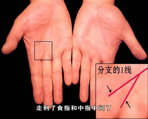 通常是由于幼年的时候脾胃虚寒,可能是幼时得过痢疾、肠炎,或者经常的胃疼,那么成年以后就会出现这么一条一线分支到食指和中指的一线。出现这样情况的人,中医通常建议胃寒需要保暖,如果小孩有,并且是冬天时候的话,建议经常喝点姜糖水(用红糖和生姜煮水),给孩子暖胃。