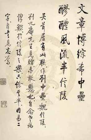 其后杂临碑帖以及历代名家墨迹,以习智永《千字文》墨迹最久,功亦最勤。论其甘苦,惟骨肉不偏为难。为强其骨,又临《玄秘塔碑》若干通。偶为人以楷字书联,见者殷勤奖许之曰,此深于诒晋斋法者,而余固未尝一临诒晋帖也。