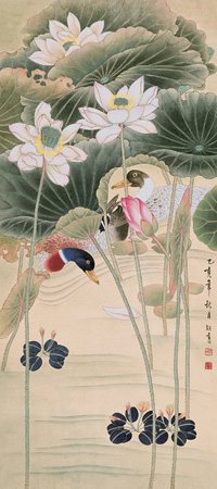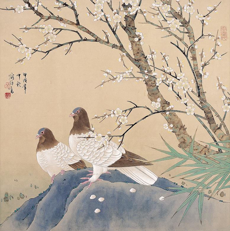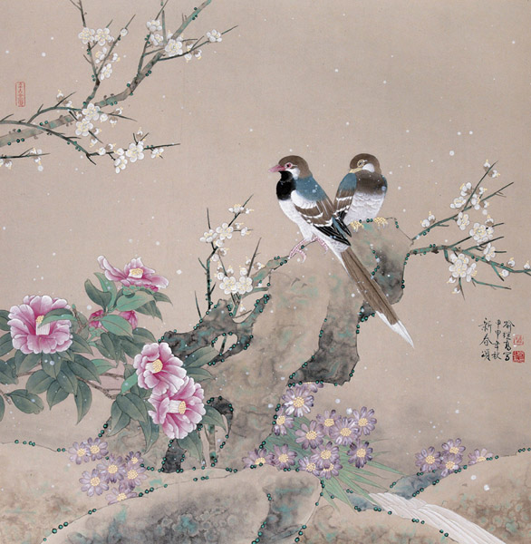 回顾历史,中国工笔重彩花鸟画从人物画配景地位脱离出来,便如蛹化蝶,振翅而飞,曾有过五代两宋的辉煌时期,无论题材、形式、技法、意境等方面都有很大的开拓和创造;许多画家曲尽物理、穷究生态,表现了花鸟的自然之美,并赋予种种寓意和诗的情趣,许多优秀之作,成为后世难以企及的典范。因此今天复兴工笔重彩花鸟画,起点和要求都是很高的,既要继承,更要超越,进入前人所未曾达到的更高的艺术境界,这是时代向画家们提出的难题。