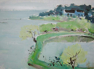 从林风眠到苏天赐再到沈行工,其实是可以看出一脉相传的承继性的,那种浸透在风景画中的敏感和热情,那种对精神自由的追求,对美轮美奂的光与色的中国化追求,以及融合西方形式与东方神韵于一体的不遗余力……但是,他们各自鲜明的艺术个性也一目了然:林画寓灵动于朴拙,驭奔肆于方圆;而苏画则寓朴拙于灵动,任信步于悠然。与苏老油画的空灵简约、举重若轻相比,沈行工油画又更倾向于塞尚式的藏巧显拙,他追求中国文脉融合色彩的新境界,犹如水墨般单纯的色调,含蓄优雅地描绘了江南四季交替的秀丽篇章。这些如诗的油画,折射的,是中国数代油画家不懈的审美追求以及心心相印的精神传承。