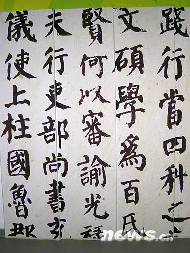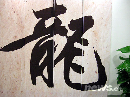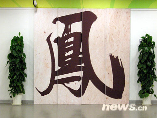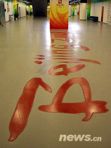 在北京奥运会主新闻中心内印有中国书法墙壁