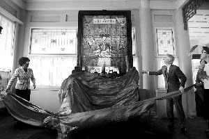 荷兰文化教育科技部部长、荷兰驻华大使等来到颐和园文昌院,一起揭开了修复完工慈禧像的红幕。