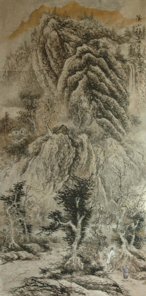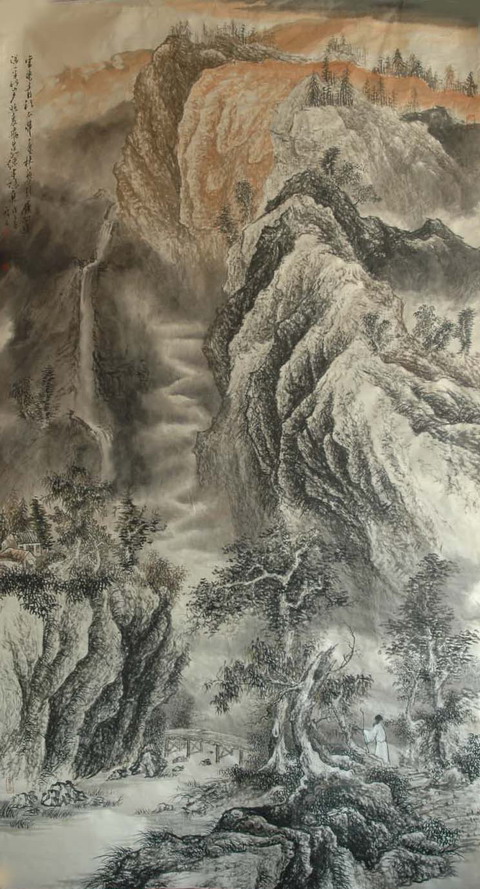 周一峰,男,1970年11月11日生于江苏。现居北京从事影视工作。幼年启蒙于本家周凡老人(60年毕业与前浙江美院),习素描,色彩。少长问业于姜华教授,正腕正道,临古帖摹名画。及长,游学京华,师从画家闽先瑞先生,西沐先生等老师,系统学习梳理画理,踏实研习传统,今年致力于探索国画的水墨精神。