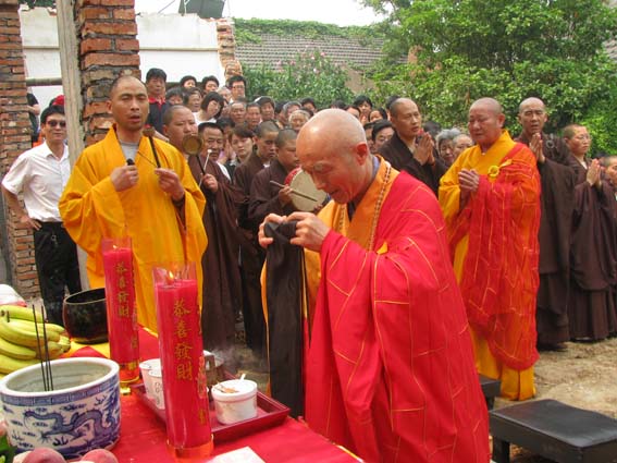 定昌法师 、极乐寺定旭法师及浦口地区 . 和县地区 . 合肥市 . 南京市等各寺当家法师及十方信众数百人参加松筠寺大雄宝殿上梁大典 。