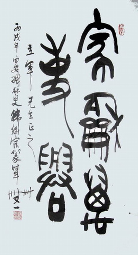 韩继宗先生自幼酷爱书法,在陕西省博物馆工作后,穿行于碑林40年,享尽名碑熏陶,受益非浅,对篆书情有独钟。韩继宗的书法作品融入美术修养,书画结合形成独特风格;书法作品布局合理,结构严谨;书写在激情时落笔,一气呵成,贯通流畅;自上世纪八十年代起,多次参加全国性书法大赛,获金奖十多次、银奖数十次。