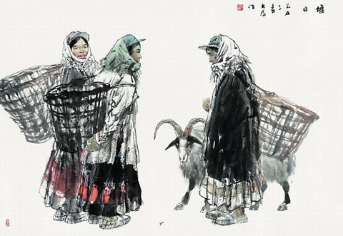 上世纪70年代末,伴随着新时期文艺春天的到来,中国画创作从极左主义的思想禁锢中冲决出来。一方面是回归传统,对曾经遭受批判的文人画予以重新审视与肯定;另一方面则是积极创新,从西方传统绘画与现代主义的艺术中汲取有益的养分。工笔人物画便是在这样一种时代的需求中,上溯唐宋人物画传统,并试图将这种传统和20世纪接受西方写实绘画而形成的新传统以及新时期对于现代性语言的探索融合一体。乡土写实美术开始让画家们摆脱公式化、概念性的创作模式,工笔人物画家从这种时代的审美思潮中反观他们曾经拥有的生活土壤,并从中获取了源源不断的创作灵感与激情。乡土美术不仅是在精神上对于质朴恬静的乡村生活的回归,而且是艺术上对于本土审美品格的发现与创造。当时的许多工笔人物画,便是从这样的审美追求中对少数民族纯朴的民风予以诗意的、抒情的发掘与表现。刘大为的水墨人物画是在以形写神的基础上对于传统笔墨的继承与再度整合,并由此形成了他清秀洒脱、温润古雅、恬淡质朴的自家面目。