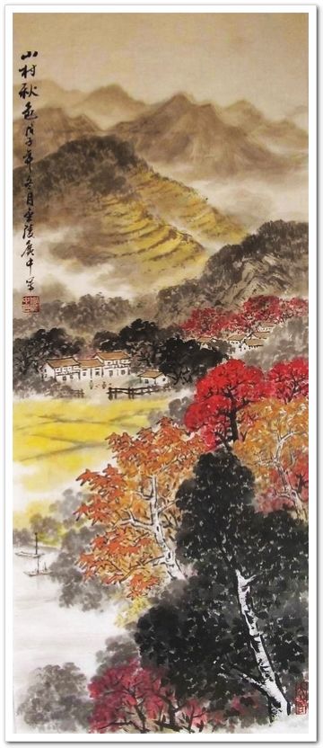 金陵山水画家周广中先生:“小村秋色”136X68CM