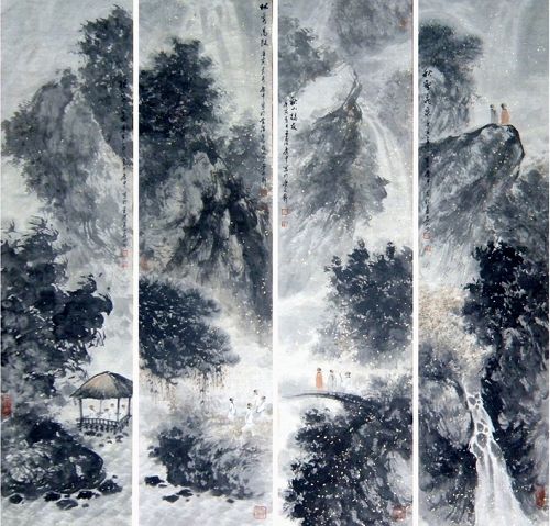 金陵山水画家周广中先生:“林泉高士”136cmx35cmx4