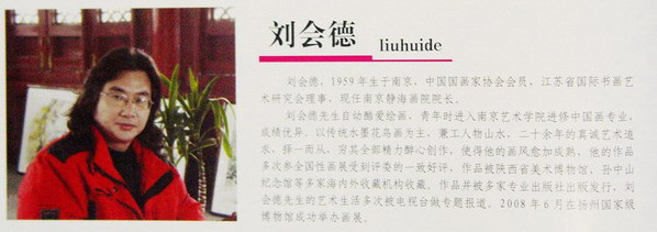 刘会德先生自幼酷爱绘画,青年时进入南京艺术学院进修中国画专业,成绩优异。以传统水墨花鸟画为主,兼工人物山水,二十余年的真诚艺术追求,择一而从,穷其全部精力醉心创作,使得他的画风愈加成熟,他的作品多次参全国性画展受到评委的一致好评,作品被陕西省美术博物馆、孙中山纪念馆等多家海内外收藏机构收藏。作品并被多家专业出版社出版发行,刘会德先生的艺术生活多次被电视台做专题报道。2008年6月在扬州国家级博物馆成功举办画展。
