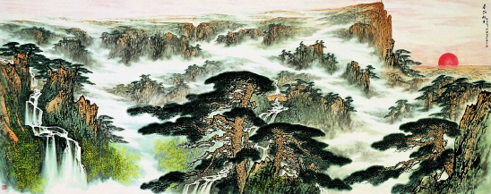 张登堂 泰岱旭日(山东大厦藏) 540×250cm 2003年