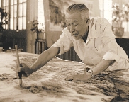 钱松喦1977年正在绘制《枣园曙光》