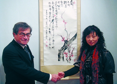 作品在法国卢浮宫展览,与法国美协主席IsabelleLawson合影