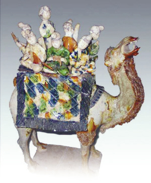 扬州博物馆镇馆之宝——元代的霁蓝釉白龙纹梅瓶(图⑤),最初也是用来装酒的,它的瓶口很小只可以插一枝梅,非常符合中国文人雅士的审美情趣。元代的霁蓝釉梅瓶现在世界上只存3件。扬州博物馆的这件是最大、最完整的,故宫博物馆和法国集美博物馆也各有一件这样的梅瓶,不过那两件梅瓶都是有一些缺陷的。这个梅瓶也有一个故事:这个梅瓶在一个普通人家传承了600多年,到了“文革”时期,妈妈怕因为此瓶而遭到伤害,就用墨汁将它的周身涂得漆黑。直到1976年,这户人家的儿子瞒着母亲将此瓶以18元卖给了当时扬州市的文物商店。一件元代的瓷器精品在民间辗转了600多年能够保存得这么完整,真的算是一个奇迹。