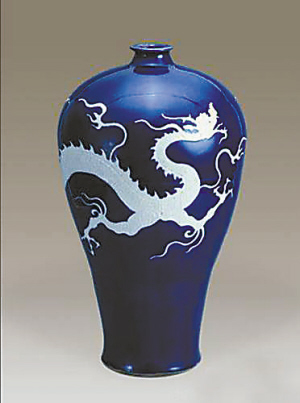 ⑤ 元霁蓝釉白龙纹梅瓶