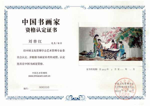 刘普红在绘画的意境中不仅投入,有天份,而且勤奋之至。“女人如花花似梦”她画的女人是极品,清雅脱俗,娇艳欲滴,像一朵朵、开放的花朵,似花似梦,似烟似雨,她每天花十四小时以上,在画室内刻苦磨练,精进不息。用最原始最质朴的感觉,调出仕女图中的静谧,柔媚、温情。“我小时候美女画就画得特别好。”刘普红傻傻的告诉我,年轻时太忙,没有时间拾笔,忙于生活的我,大概是天分使然,总是情不自禁的像个孩子,对画痴的不行,一位朋友来我的茶社,无意中发现我墙上的泼墨,大叹可惜,问我,这种特质为什么没有发扬下去?我悲哀的告诉他,生活不允许我寻缘,我在他的鼓励下又重拾画笔,圆自己梦。从此便一发不可收了,接着又拜师学艺,先写花鸟,再临水墨。一幅幅写意,巧拙并用,自成一趣。重拾画笔,她一点也不觉得生疏,那曾经着墨的古代仕女仿佛一个个鲜活的生命,又走入了作者的世界,她们轻甩水袖,袅袅婷婷,共舞齐歌。她们抚琴拨弦,多愁善感,她们的一颦一笑,一举手一投足,无不沁人心扉,可以说,刘普红笔下的美人又一个个仙活起来。