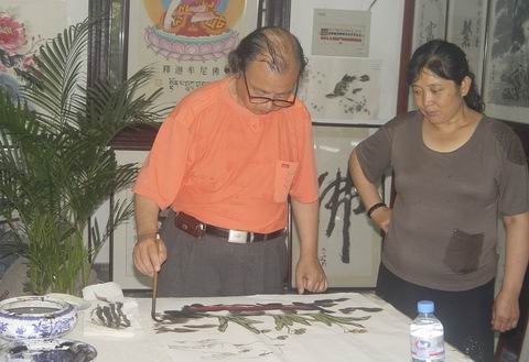 洛阳牡丹书画院副院长罗玉祥先生为画展挥毫泼墨