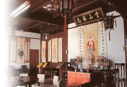 文山寺座落在苏州城内西北方阊门文丞相弄内,面临东中市,背枕挑花坞。创建于南宋。其原址为文山寺、潮音庵、云林庵三寺共处之地,历经沧桑,至清初己近毁颓。民国初年,三寺合并为一,额其名曰"文山潮音禅寺"。1958年文山寺改为比丘尼道场,苏州城内三十余座尼众寺庵合并于此。"文革"中文山寺被工厂占用。