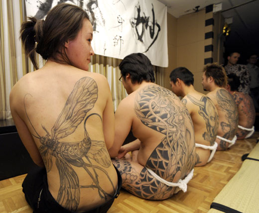 2月25日,日本东京,模特在展示自己的个性文身,这些作品都是出自日本文身艺术家Horimyo之手。