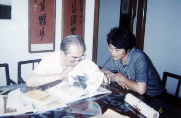 与著名画家亚明先生在一起                   与著名画家程十发先生在一起