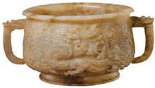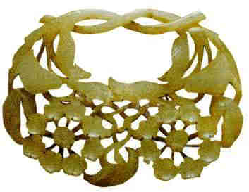 在中国玉器工艺史上,三国魏晋南北朝时期,是高度发达的汉唐玉雕间的低潮,出土玉器极少,而且都具汉代遗韵,有所创新者,唯有玉环和玉盏。究其原委,当时不爱好琢玉,而盛行吃玉。在神仙思想和道教炼丹术的影响下,觅玉、吃玉达到了疯狂的程度。早期玉器的美术价值的礼仪观念,这时消失殆尽。