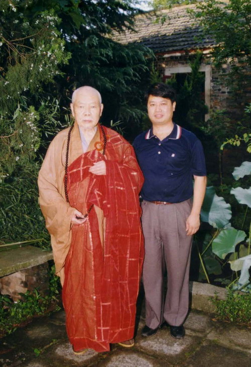 居士正立与恩师在一起。