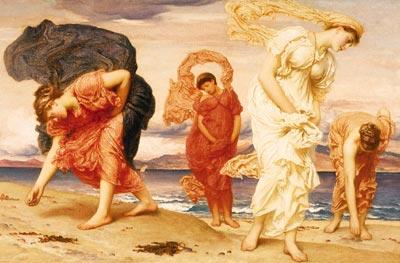 莱顿的作品《海边捡拾鹅卵石的希腊女孩》