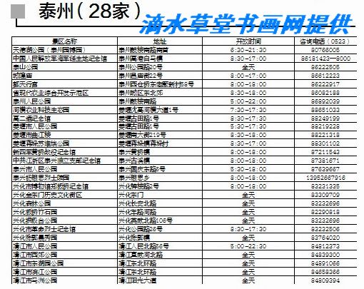 江苏省全年免费开放的旅游景区徐州、无锡、南通、镇江、泰州