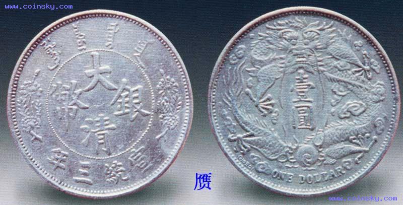大清银币长须龙壹圆,清宣统三年(191 1)天津造币总厂铸。当时清政府欲统一币制,聘请海外高级技师精心设计制造了这套宣统三年大清银币,计有六、七种版式,长须龙是其中之一。新币刚试铸成功,正逢武昌起义,于是大部分新版银币胎死腹中,只留有少量样币。长须龙因背面龙首之须特长而得名,属于试样性质,因图案精致、存世稀少而受人重视。