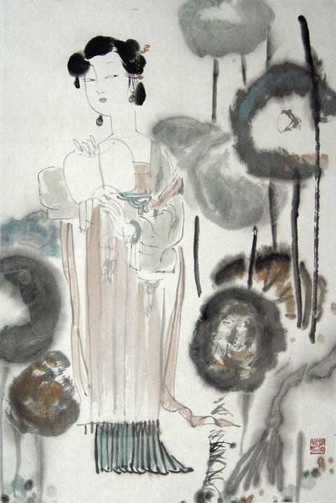 赵晓华是一位既有深厚传统功力,又善于创造的画家。他擅长人物、山水、花鸟、尤工人物。重视师传统,师造化,走“画乃吾自画”之路。作品大致分为两类,一类为直接抒情之大章巨幅,场面浩大,以形写神,线条优美流畅,深入细微地刻画出众多的活生生的艺术形象。其章法、形象、笔墨、色彩的处理颇有独到之处,然无不服从于意境的创造。其《舞台.角色》、《乡间社火》、自构思到完成,反反复复前后用了数年时间;《女娲补天》画了四、五种变体,至今仍充满激情继续画着,一类为水墨写意。如《春》《夏》、《秋》、《冬》等等。画家的写意画中大都追求一种闲、静、平和的意境,他的写意人物,以神写形,爱画仕女题材,多借鉴唐宋佛教造像,虽作半裸,却庄重,高洁,绝无妖艳之气。取舍夸张的结果决不是被扭曲丑化了的形态,而是不似之似,得其神似,美而可悦。