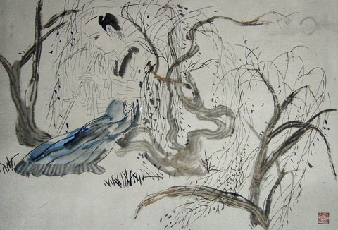 1986年,水墨画《听风》,入选江苏省首届青年美展,获创作奖。