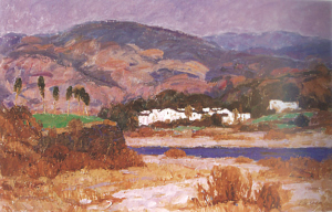 从林风眠到苏天赐再到沈行工,其实是可以看出一脉相传的承继性的,那种浸透在风景画中的敏感和热情,那种对精神自由的追求,对美轮美奂的光与色的中国化追求,以及融合西方形式与东方神韵于一体的不遗余力……但是,他们各自鲜明的艺术个性也一目了然:林画寓灵动于朴拙,驭奔肆于方圆;而苏画则寓朴拙于灵动,任信步于悠然。与苏老油画的空灵简约、举重若轻相比,沈行工油画又更倾向于塞尚式的藏巧显拙,他追求中国文脉融合色彩的新境界,犹如水墨般单纯的色调,含蓄优雅地描绘了江南四季交替的秀丽篇章。这些如诗的油画,折射的,是中国数代油画家不懈的审美追求以及心心相印的精神传承。